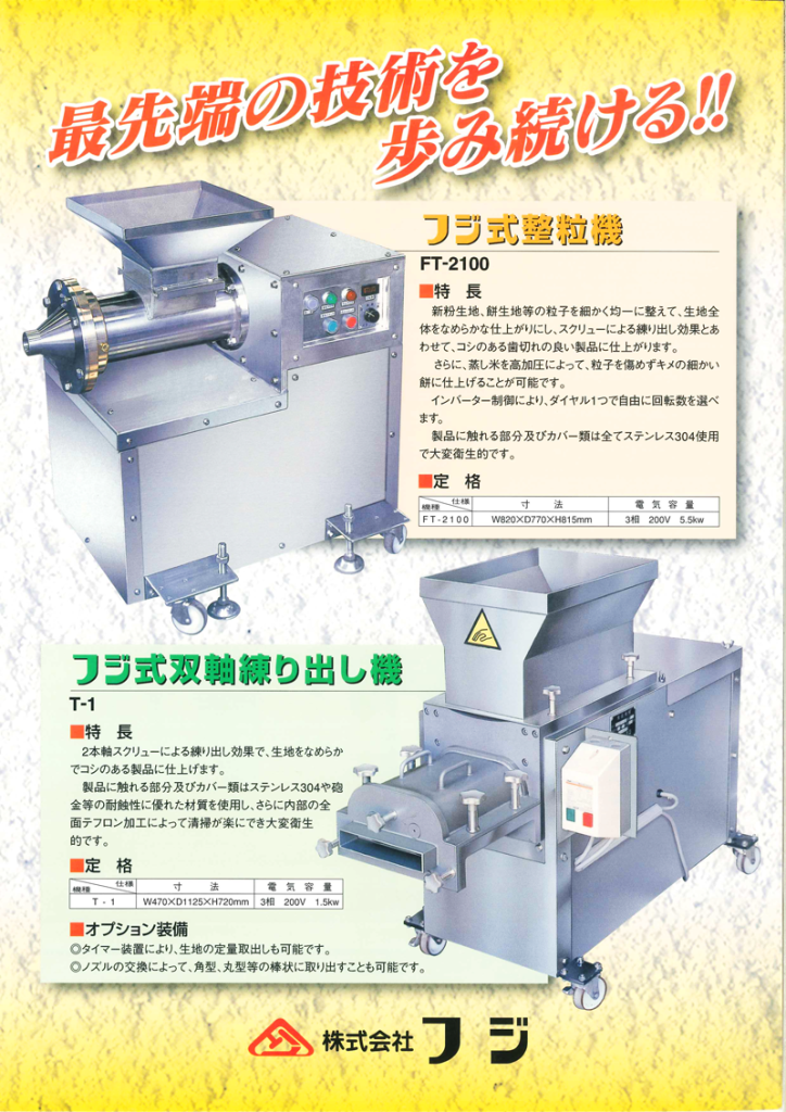 生地全体がなめらかな仕上がりとなり、スクリューによる練り出し効果とあわせて、コシのある歯切れのよい整品に仕上がります。